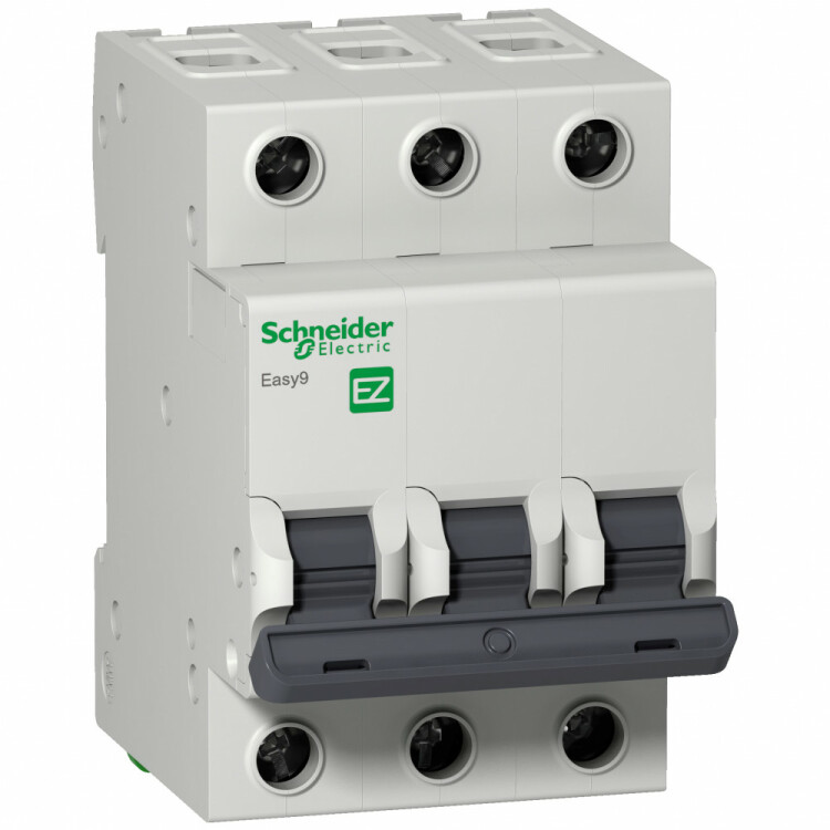Автоматический выключатель серии Easy9 Schneider Electric, 3-полюсный, номинальный ток 63 А, характеристика С, Icn = 4.5 кА.