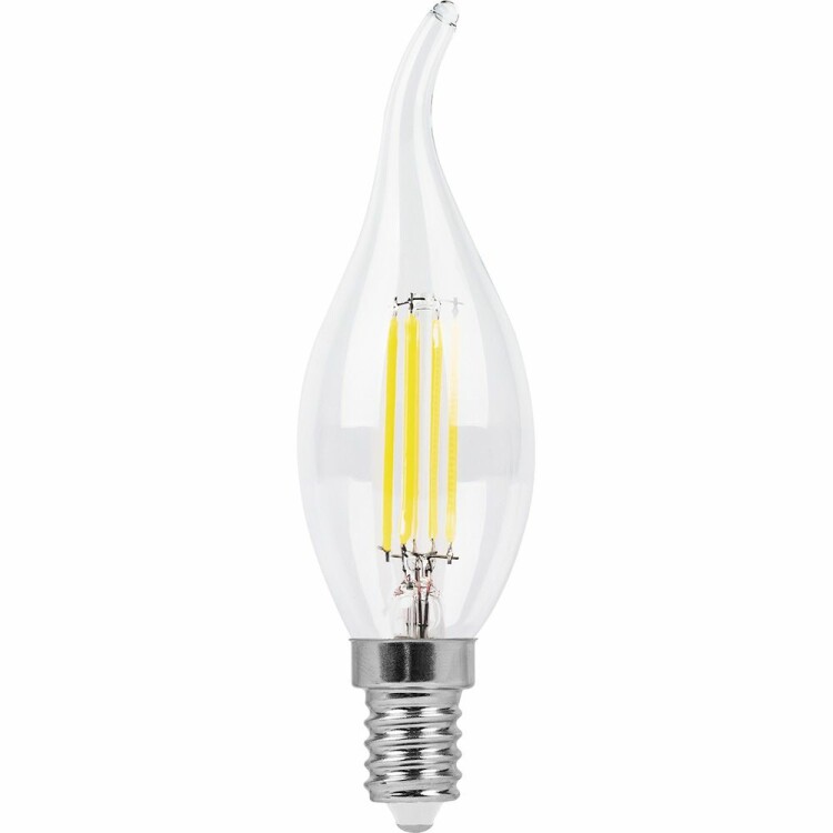 Лампа светодиодная филамент FERON LB-714, C35T (свеча на ветру), 11W 230V E14 2700К (белый теплый), рассеиватель прозрачный 950Lm, угол рассеивания 270°, 121*35мм