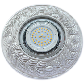 Ecola накладка широкая гипсовая "оливковый венок" для встр. свет-ка GX53 H4 серебро на белом 23х195