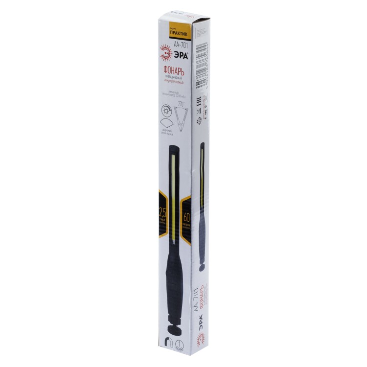 Многофункциональный светодиодный фонарь серии "Практик" идеальный выбор для поездок на автомобиле.Надежность фонаря достигается за счет корпуса из ударопрочного пластика. Он устойчив к падениям, неприхотлив в уходе.Дальность луча в 60 м, достигаемая за счет сверхъяркого светодиода, подарит Вам направленное освещение. Более того, встроенный диммер позволит управлять яркостью в соответствии с индивидуальными предпочтениями.Главный плюс аккумуляторного фонаря заключается в его мобильности. Он оснащен петлей для подвешивания, а также магнитом в основании. Это позволяет закреплять фонарь на самых различных поверхностях.Время работы без подзарядки составляет 2,5 часа. Тем не менее, Вы никогда не пропустите момент полного выключения, ведь данный светодиодный фонарь оснащен световым индикатором.Автомобильный фонарь от бренда ЭРА это практичность и качество по оптимальной цене.