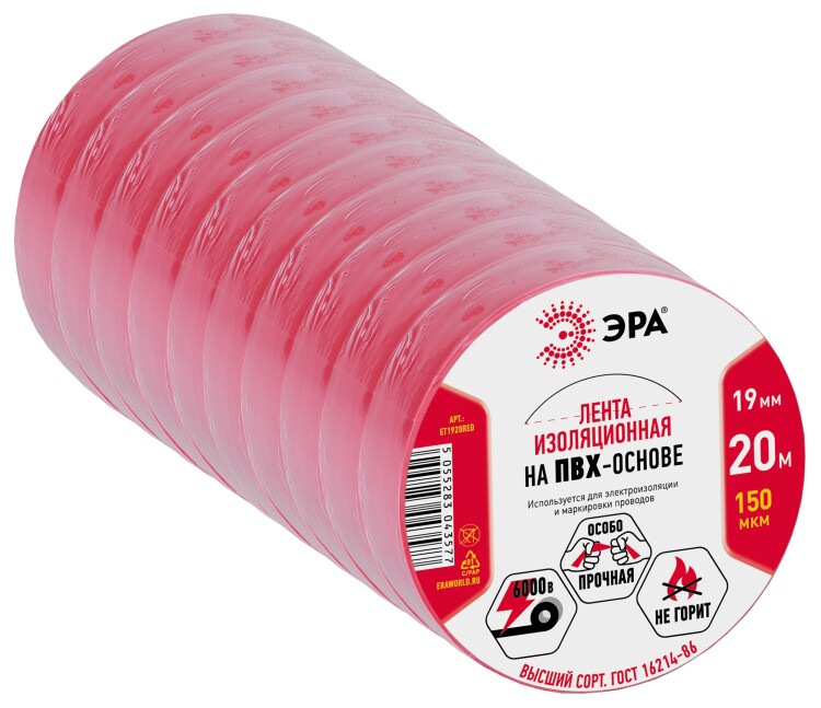 ЭРА Изолента ET1920RED ПВХ 19мм х 20м красная