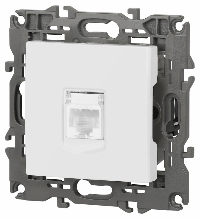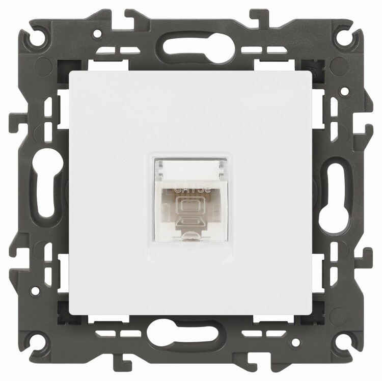 Розетка интернет RJ45 серии Эра Elegance цвет белый 14-3107-01. Рамки приобретаются отдельно. Рамки Эра Elegance ПЛАСТИК: 1 пост 14-5001-хх, 2 поста 14-5002-хх, 3 поста 14-5003-хх, 4 поста 14-5004-хх, 5 постов 14-5005-хх; СТЕКЛО: 1 пост 14-5101-хх, 2 поста 14-5102-хх, 3 поста 14-5103-хх, 4 поста 14-5104-хх; МЕТАЛЛ: 1 пост 14-5201-хх, 2 поста 14-5202-хх, 3 поста 14-5203-хх, 4 поста 14-5204-хх; ДЕРЕВО: 1 пост 14-5301-хх, 2 поста 14-5302-хх, 3 поста 14-5303-хх, 4 поста 14-5304-хх (хх - код цвета: 00-прозрачный, 01-белый, белёный дуб, 02-слоновая кость, 03-алюминий, 04-шампань, 05-чёрный, чёрное дерево, 07-ясень, 09-дуб, 10-венге, 11-клён, 14-медь, 21-жёлтый, 22-оранжевый, 23-красный, 25-бордо, 26-лайм, 27-зелёный, 28-голубой, 29-синий, 30-розовый, 31-мокко, 32-серый, 41-сталь, 42-титан).