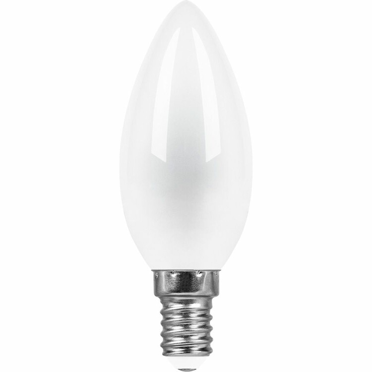 Лампа светодиодная филамент FERON LB-713, C35 (свеча), 11W 230V E14 2700К (белый теплый), рассеиватель матовый белый, 910Lm, угол рассеивания 270°, 100*35мм