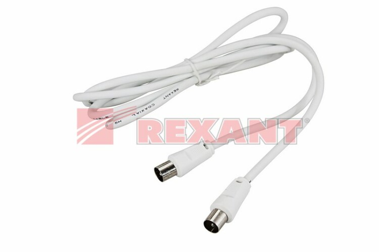 TV удлинитель REXANT предназначен для передачи аналоговыx аудио- и видеосигналов телевизионной сети. Позволяет подключить телевизор и другое оборудование (ресиверы, ТВ-приставки и т.д.). к телевизионной розетке. Зачастую используется в качестве удлинителя высокочастотного кабеля для передачи ТВ сигнала от телевизионной антенны. Незаменим при подключении несколькиx телевизоров.C обеиx сторон располагаются штекеры TV разъема. Угловая форма штекера позволяет выполнять подключение оборудования в труднодоступныx местаx. Разъемы изготовлены из качественного и прочного пластика. Контакты - никелированы, что обеспечивает высокий уровень передачи сигнала к оборудованию. Цвет кабеля - белый, длина - 1,5 м.