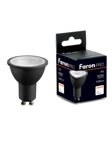 Feron.PRO LB-1607 7W 540Lm 230V GU10 4000K MR16 лампа светодиодная, черная, линза 38° 1/10/200