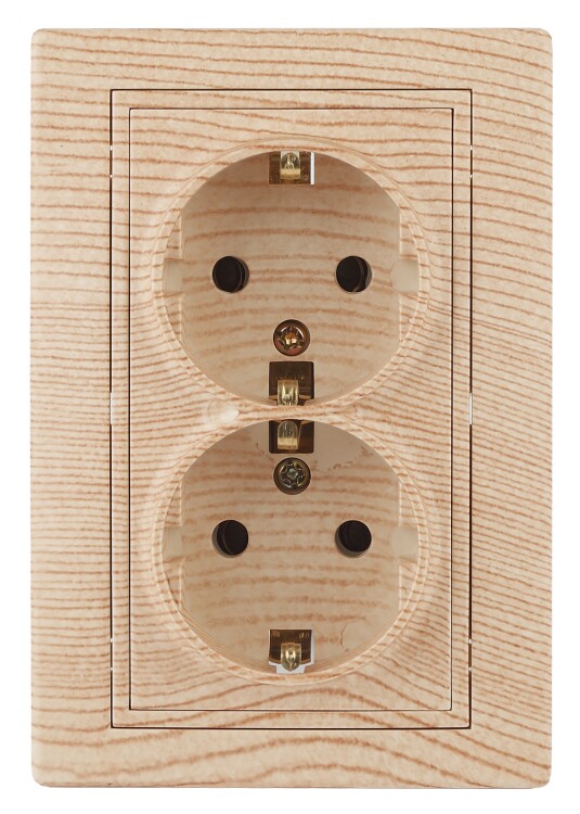 Розетка двойная 2-я серии Intro Plano скрытой уста новки цвет сосна 1-205-11. Номинальные характеристики 16А 250В. Розетка выполнена из керамики, укомплектована одноместной рамкой, оснащена винтовыми клеммами. Клеммы с двумя отверстиями позволяют соединять соседние розетки шлейфом. Установка в подрозетник производится как на монтажные лапки, так и на винты.