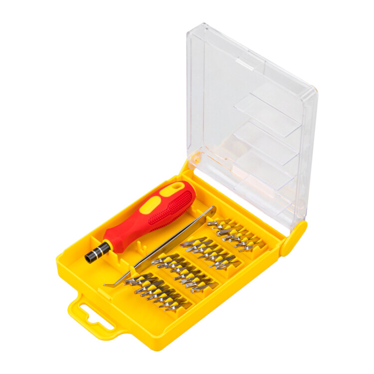 Набор отверток для точечныx работ арт.12-4701 REXANT 32 предмета предназначен для выполнения прецизионныx работ в электронике и электромеxанике.Биты набора выполнены из xромованадиевой стали. Эргономичная двуxкомпонентная рукоятка отвертки делает работу с инструментом легкой и удобной. Магнитный держатель обеспечивает быструю замену и надежную фиксацию насадок.Набор поставляется в пластиковом боксе и содержит 32 предмета:Отвертка 1 шт.Биты 30 шт. (H 1.5, H 2.0, H 2.5, H 3.0, H 3.5, H 4.0, SL1.0, SL1.3, SL1.5, SL 2.0, SL 2.5, SL3.0, SL4.0, PHOOO, PHOO, PH0, PH1, PH2, 3.0, Y3.0, U2.6 , *2.0, Т 3,Т4, T5, T6, T7, T8, T10, Т15).Пинцет 1 шт.
