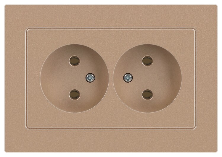 Розетка двойная без заземления серии Intro Accent скрытой установки цвет шампань 6-204-04. Номинальные характеристики 16А 250В. Выполнена из негорючего термопласта, оснащена винтовыми клеммами. Парные клеммы обеспечивают соединение шлейфом. Монтаж в подрозетник производится и на лапки, и на винты.