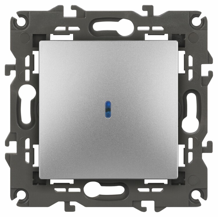 Выключатель 1-клавишный подсветка Эра Elegance а люминий 14-1102-03. Оснащён автоматическими клеммами для надёжной фиксации жил кабеля в механизме. Рамки приобретаются отдельно.