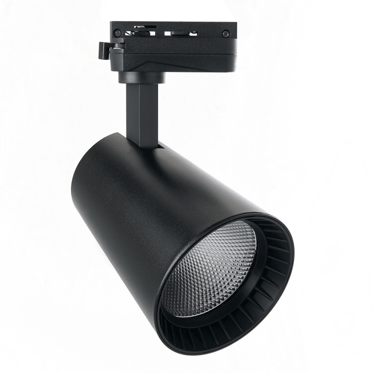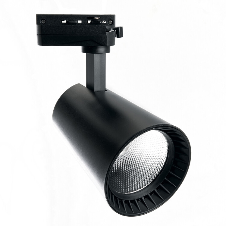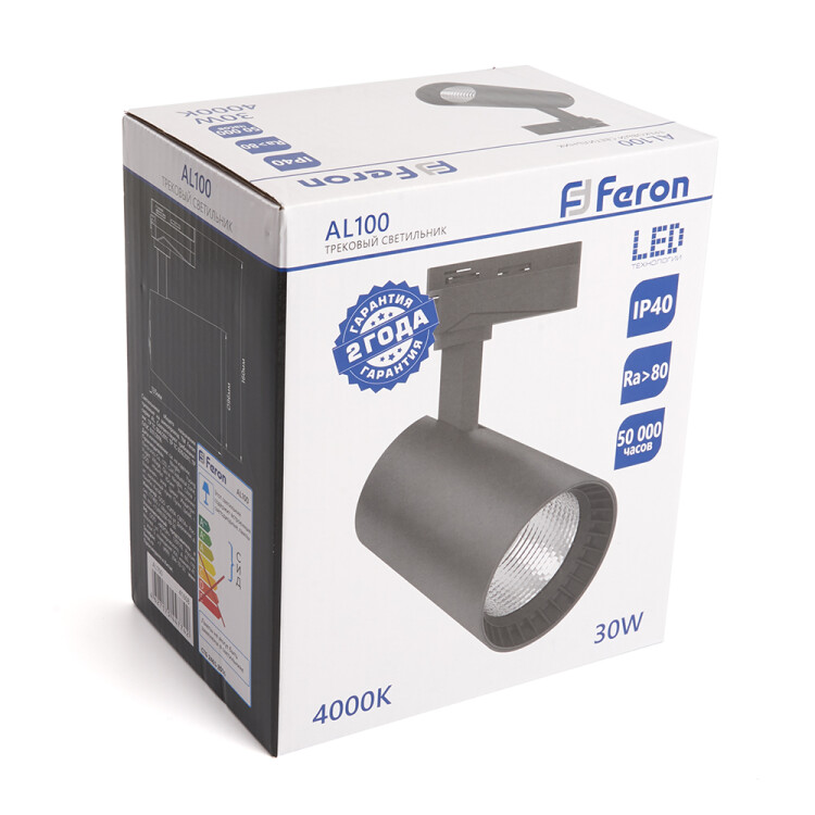 Светильник трековый на шинопровод, однофазный (ДПО) FERON AL100, 30W, 4000К (белый), 170-265V, 2700Lm, цвет черный, корпус алюминий, рассеиватель поликарбонат, вращение →350°/↓90°, 90*130*170 мм