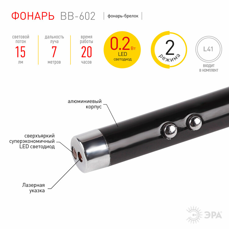Светодиодный фонарь-брелок с лазерной указкой BB-602 "ДАБЛ". Мини брелок работает в двух режимах: яркий фонарик и лазерная указка. Фонарик очень компактный, корпус выполнен в лаконичном дизайне из алюминия. Несмотря на свои очень компактные размеры, фонарь оснащён мощным светодиодом, который светит ярким белым светом. Фонарь способен на 20 часов работы не требуя замены элементов питания, даёт средний угол пучка, а дальность луча составляет 7 метров. Светодиод очень яркий, светит белым светом и не требует замены. Лазерная указка, мощный фонарик, алюминиевый корпус - такой брелок может пригодиться в бытовых ситуациях, при этом он не поцарапается и не сломается. Фонарик уже готов к работе, в комплекте предусмотрены элементы питания. Этот стильный аксессуар всегда под рукой, можно вы брать яркий фонарик, лазерную указку или включит оба режима сразу.