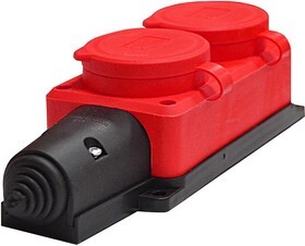 UNIVersal Колодка 2-х местная однофазная с заглушками "Компакт" с/з каучук Красная 16А IP44 1/40