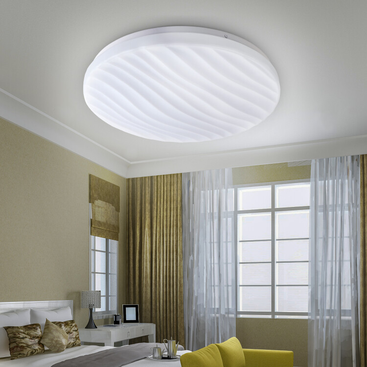 Рельефный дизайн рассеивателя, напоминающий морские волны, идеально сочетается с круглым плоским корпусом. За счет этого электросветильник освежит интерьер гостиной, спальни или прихожей.