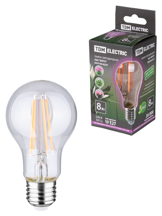 Назначение:br/Для создания дополнительного освещения растений в период короткого светового дня, в пасмурные дни или в условиях полного отсутствия солнечного света.Для обеспечения правильного развития, роста и плодоношения растений. Лампы излучают свет красно-синего спектра.br/Преимущества:br/Подходит для всех типов растений.Красно-синий спектр благоприятен для фотосинтеза, стимулирует рост растений, приближает начало цветения и ускоряет созревание плодов.br/Материалы:br/Корпус лампы - прозрачное стекло.Цоколь - пластик.Источник света - светодиодная лента.br/