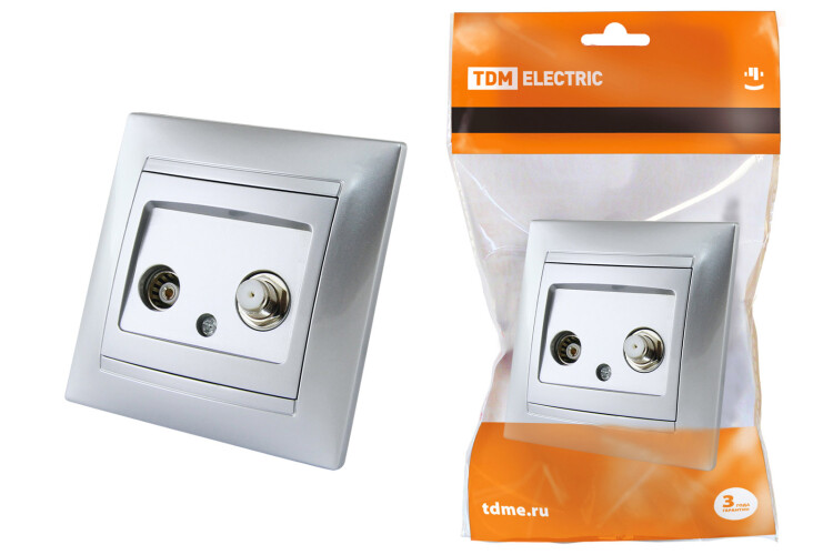 TDM Розетка TV ("мама") + SAT (F-разъем) 0-2400МГц серебр. металлик "Лама"