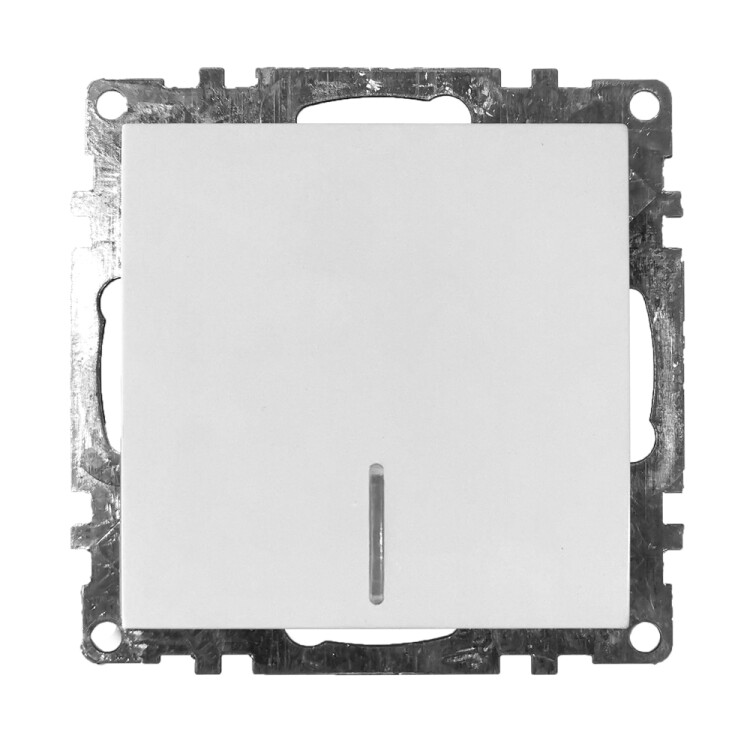 Выключатель одноклавишный STEKKER GLS10-7101-01, серия Катрин, с подсветкой (желтый), тип установки - скрытый, размер изделия 55*55*35мм., цвет белый, материал изделия ABS пластик, латунь. Номинальное напряжение 250 , номинальный ток 10А, IP20