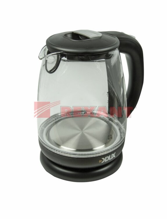Чайник электрический. Модель DX-1258В. Корпус выполнен из боросиликатного стекла. Внутренняя LED подсветка. Фиксирующаяся крышка. Мощность 2200Вт. Объем 1,7 литра. Тип нагревательного элемента -закрытая спираль, блокировка включения без воды, автоотключение при закипании.
