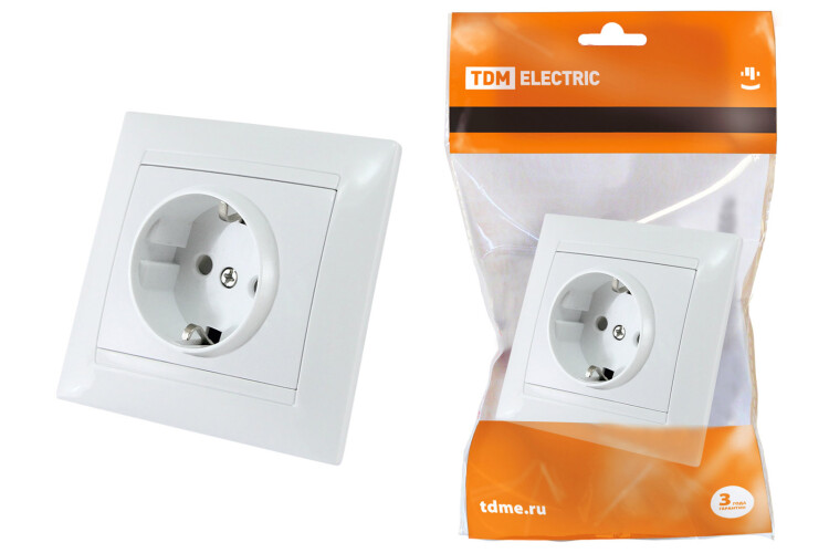 TDM Розетка 2П+З 16А 250В с защ. шт. белая "Лама"