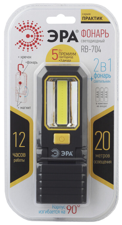 ЭРА RB-704 Фонарь рабочий серия "Практик" [5Вт COB + 3xLED, пласт., 3xAAA, крючок, 2 магнита, бл]