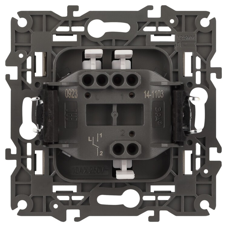 Выключатель 1-клавишный Эра Elegance белый 14-1103-01. Оснащён автоматическими клеммами для надёжной фиксации жил кабеля в механизме. Рамки приобретаются отдельно.