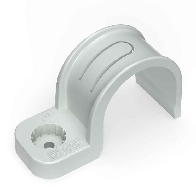 Промрукав Крепеж-скоба пластиковая односторонняя для прямого монтажа атмосферостойкая серая в п/э d32 мм (25шт/375шт уп/кор)