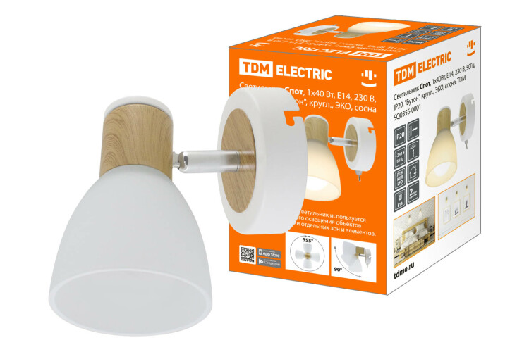 TDM Светильник Спот, 1х40Вт, Е14, 230 В, 50 Гц, IP20, "Бутон", кругл., ЭКО, сосна.