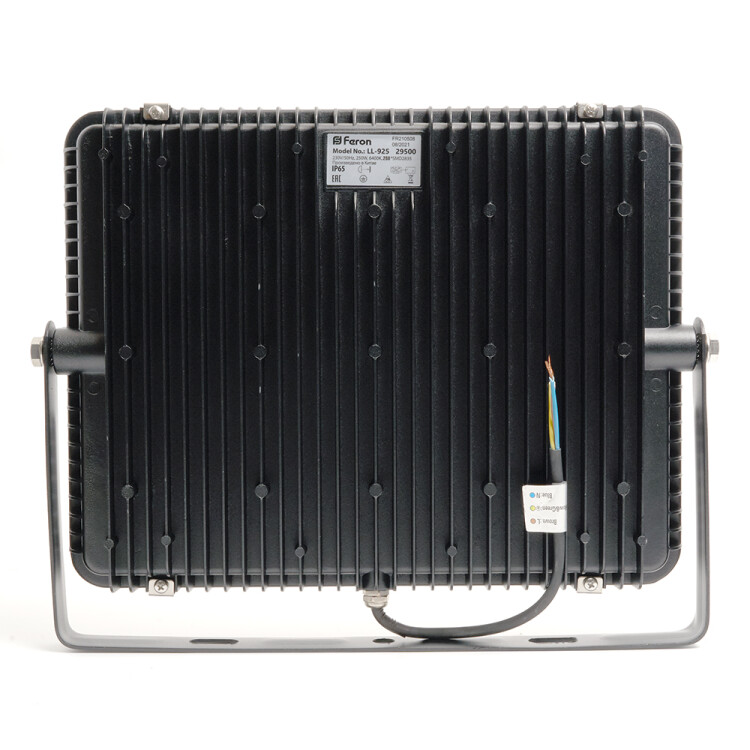 Прожектор светодиодный многоматричный с монтажным креплением на кронштейн, (ДО) FERON LL-925, 250W, 6400К (холодный белый), 230V/50Гц, 21250Lm, IP65, угол рассеивания 120°,*SMD2835, раб.t -40°C - +40°C, цвет чёрный, корпус алюминий литой под давлением + стекло, 350*42*318 мм