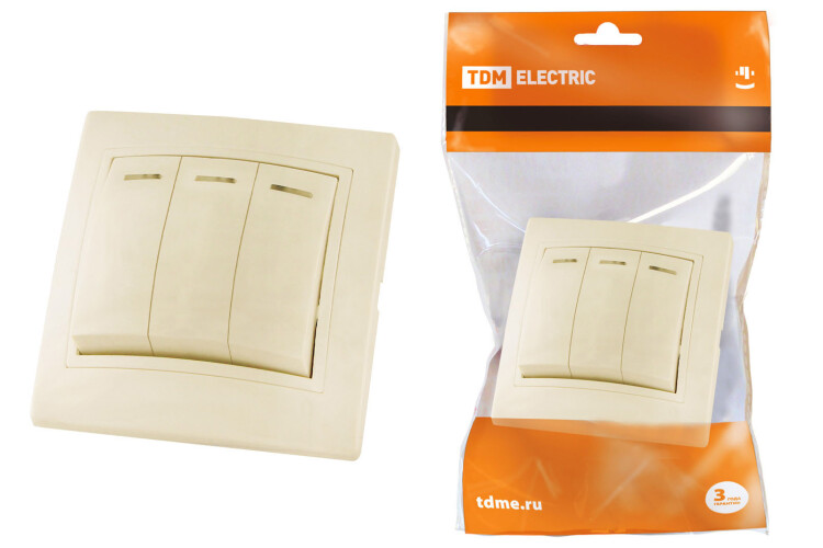 TDM Выключатель 3 кл. с подсветкой 10А сл. кость "Таймыр"