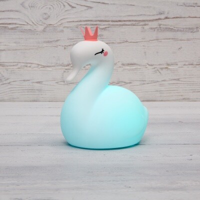 Силиконовый ночник «Лебедь» выполнен из мягкого материала, приятного на ощупь. Забавный персонаж придется по душе каждому ребенку, станет его лучшим другом, который поможет быстро и крепко заснуть. Ночник светится теплым белым цветом, плавно меняет оттенки RGB-диодов или светится одним цветом из 256 вариантов. Изделие не нагревается, не имеет неприятного запаха, острых углов и опасных деталей. Ночник заряжается через USB-порт, одного объема аккумулятора хватает на 9-10 часов.