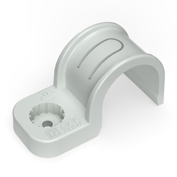 Промрукав Крепеж-скоба пластиковая односторонняя для прямого монтажа атмосферостойкая серая в п/э d25 мм (50шт/450шт уп/кор)