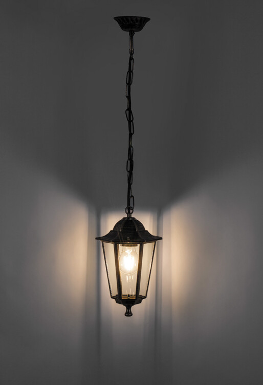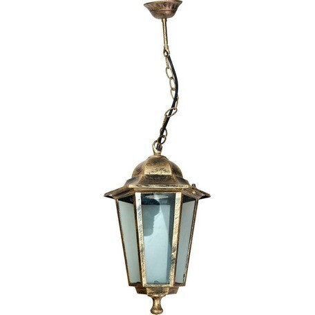 Светильник садово-парковый, серии «Классика», (НСУ) FERON 6105/PL6105 60W, E27, 230V, IP44, цвет черное золото, 6-и гранник, на цепочке, 170*170*810мм