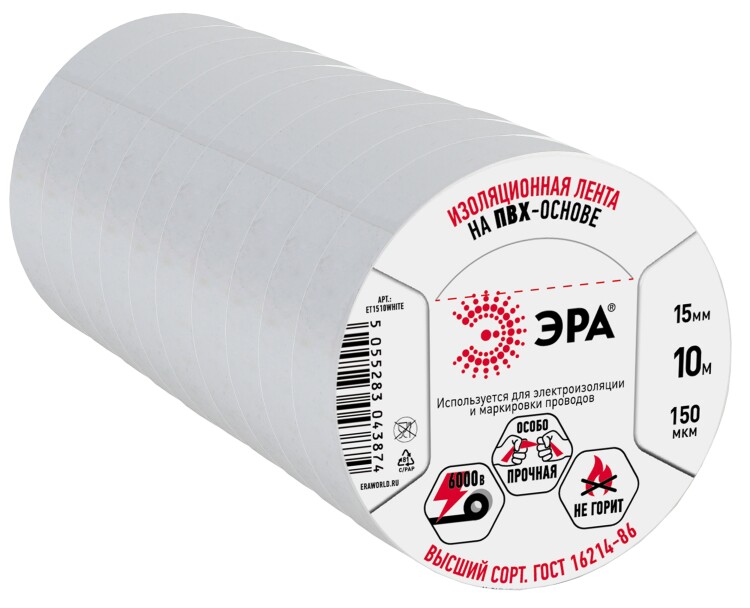 ЭРА Изолента ET1510WHITE ПВХ 15мм х 10м белая