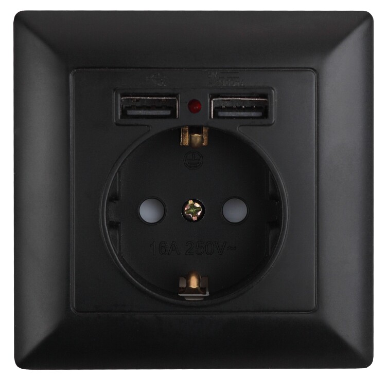 Розетка с USB со шторкой серии Intro Solo скрытой у становки цвет антрацит 4-410-05. Номинальные характеристики 16А 250В/2,1А-5В . Розетка выполнена из негорючего термопласта, укомплектована одноместной рамкой, оснащена винтовыми клеммами. Клеммы с двумя отверстиями позволяют соединять соседние розетки шлейфом. Установка в подрозетник производится как на монтажные лапки, так и на винты.