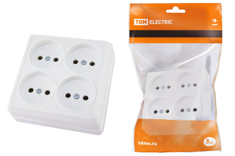 TDM Розетка четырехместная 2П открытой установки IP20 10A белая "Ладога".