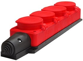 UNIVersal Колодка 4-х местная однофазная с заглушками "Компакт" с/з каучук Красная 16А IP44 1/36