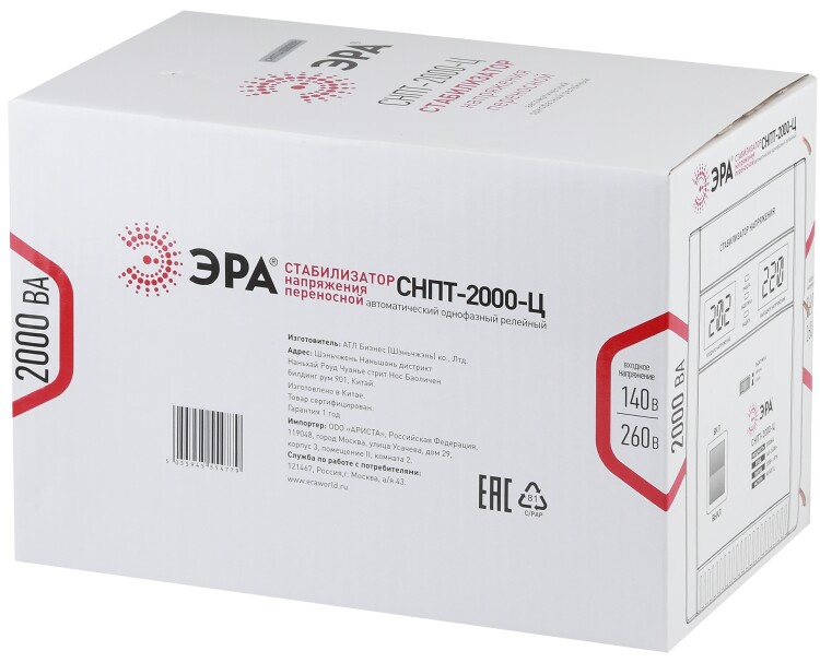 Стабилизатор напряжения переносной /напольный однофазный релейный цвет чёрный модели СНПТ-2000-Ц. Номинальные характеристики (полная мощность / диапазон входного напряжения): 2000ВА 140-260В . Предназначен для поддержания стабильного однофазного напряжения питания бытовых приборов при отклонениях значений сетевого напряжения. Выбирая стабилизатор, нужно знать, какое электрооборудование будет к нему подключено: один прибор, группу приборов либо вся домашняя (офисная) техника. Затем необходимо рассчитать суммарную мощность защищаемых электропотребителей. Основное условие выбора мощности стабилизатора напряжения - суммарная мощность подключаемой к нему нагрузки не должна превышать полной мощности самого стабилизатора (в противном случае автоматика стабилизатора будет их просто отключать). Точные значения мощности можно узнать из паспортных данных Вашего конкретного потребителя. Стабилизатор подбирается с запасом в 25-30% к его полной мощности.
