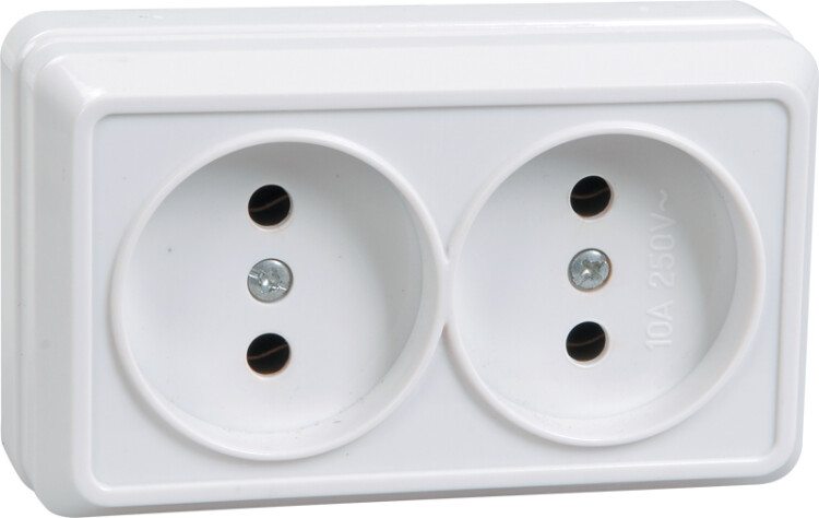 GENERICA OKTAVA РС22-2-ОБ Розетка 2местн. без з/к 10А откр.уст. (белый)