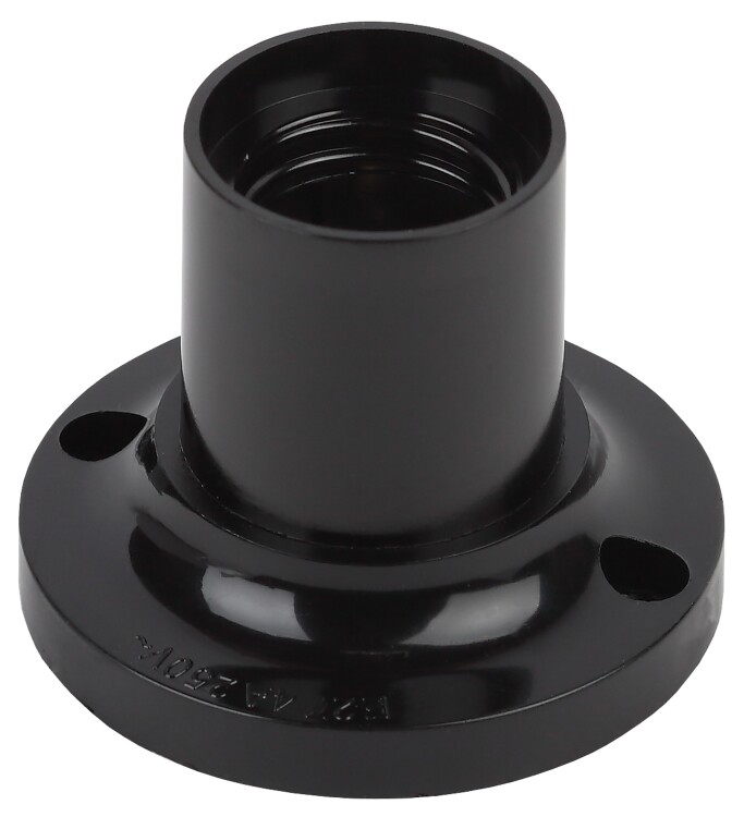 бакелитовый патрон потолочный; способен выдерживать высокие температуры (до 300 градусов), обладает высокими эл ектроизоляционными и антикоррозийными свойствами, не подвержен воздействию агрессивных сред; удобное подключение провода к контактной группе с помощью зажимных винтов