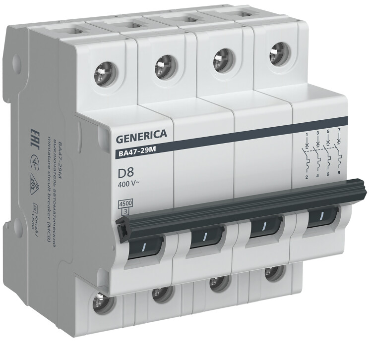 IEK GENERICA Авт. выкл. ВА47-29М 4P 8А 4,5кА D