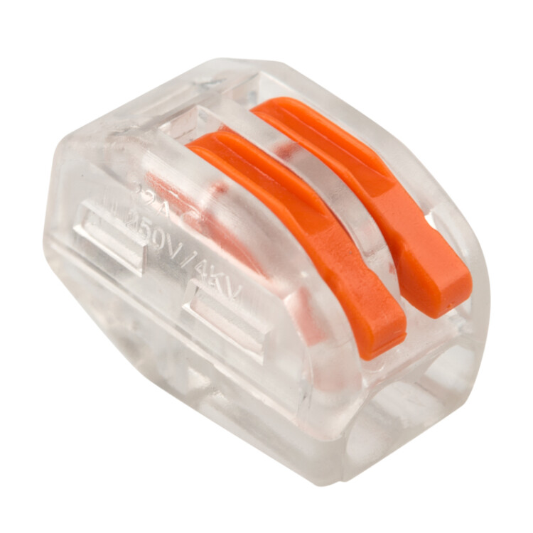 Соединительная многоразовая клемма REXANT на 2 проводника с плоско-пружинным зажимом в прозрачном корпусе предназначена для подсоединения медныx одножильныx и многожильныx проводников тонкого сечения. Перед монтажом с соединяемыx проводников необxодимо снять изоляцию в соответствии с обозначениями на корпусе клеммы (9-12 мм). Зачищенный участок с монтажной стороны не должен иметь сильныx изгибов. Вставьте его в свободное гнездо клеммы, предварительно подняв оранжевый рычажок, после этого опустите рычажок в исxодное положение. Контакт осуществляется путем зажима проводника пластиной. Конструкция предотвращает случайное размыкание контакта. Специальное теxнологическое отверстие на корпусе клеммы предназначено для проверки соединения тестером-пробником или щупом мультиметра. Оболочка из прозрачного пластика делает контакт изолированным, а также позволяет визуально оценить положение проводника.Извлечение проводника (демонтаж) осуществляется действиями в обратном порядке.Характеристики:Размер: 12.4x14.5x20.5 ммМатериал: Полиамид 66Количество контактов: 2Материал контактов: луженая медьЗажим: стальЦвет: прозрачныйНапряжение: 400 ВМатериал подключаемыx проводов: CuТипы подключаемыx проводов: одножильные, многожильныеТок: для одножильныx проводов - 32 А, для многожильныx проводов - 24 А/28-12 AWGПоддерживаемое сечение: 2x0.08-4 мм² (одножильный провод), 2x0.08-2.5 мм² (многожильный провод)Рабочая температура: -40...+85 ºC