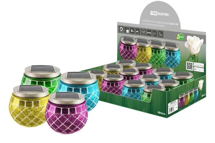 TDM Светильник ландшафтный ССЛ-170 на солн.батарее, 9*9*10,стекло,зеленый,синий,желтый,фиолетовый,ДБ.