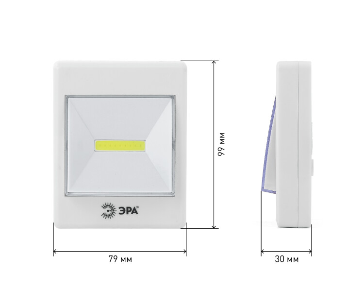 ЭРА SB-606 - компактный светодиодный фонарь-пушлайт, работающий по принципу традиционного выключателя. Создан для освещения помещений без стационарного света и для дополнительной подсветки затемнённых мест. Сверхъяркий и суперэкономичный свет chip on board - мультикристалл на плате. Широкий угол светового пучка даёт качественное заливающее освещение. Быстрое закрепление на любой гладкой поверхности, удобное включение и простота в управлении. Чтобы закрепить фонарь на любую ровную поверхность, потребуется всего минута. Самоклеящаяся основа и само устройство соединяются друг с другом при помощи прочной липучки. Это даёт большое преимущество при последующих заменах батареек - фонарь легко снимается и снова закрепляется на текстильную застёжку. Имеется и дополнительный вариант крепления - углубление для подвешивания на шуруп или гвоздь. В самом центре выключателя расположена LED-плата с целым рядом мелких и очень ярких светодиодов. это промышленная технология, адаптированная для универсальных целей. Получился яркий, но при этом ровный мягкий свет, идеальный для бытовой подсветки. LED-мультикристаллы не тускнеют со временем и не нуждаются в замене. Они обеспечивают максимально широкий угол освещения с дальностью 25 метров. Фонарь-пушлайт ЭРА SB-606 идеален для подсветки полок шкафов и ящиков комодов, для дополнительной подсветки кухонных рабочих поверхностей, для освещения подсобок. Устройство экономично - от одного комплекта батареек (3хААА) работает свыше 60 активных часов.