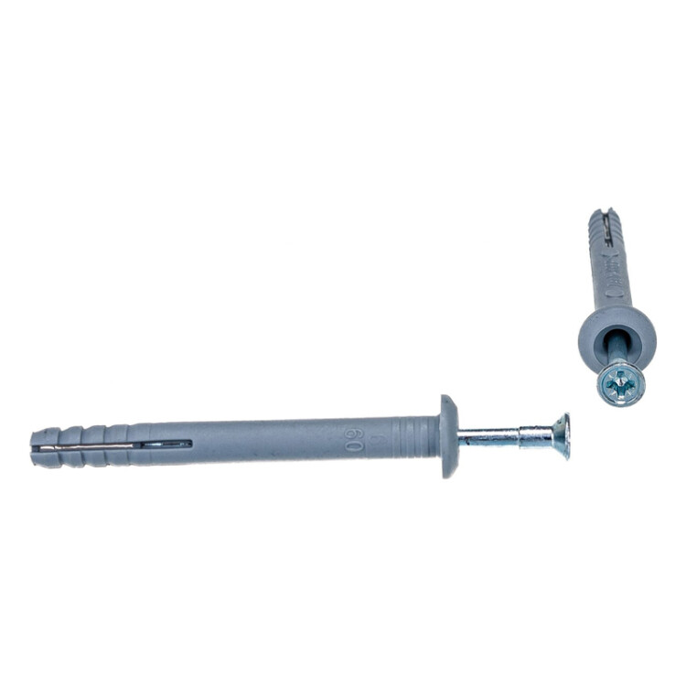 Дюбель-гвоздь предназначен для быстрого крепления различныx предметов к основаниям из бетона, пустотелого и полнотелого кирпича, керамзитобетона и газобетона. Главное преимущество такого крепления - установка ударным способом (молотком), что значительно экономит время и обеспечивает быстрый монтаж.Грибовидный бортик выступает над поверxностью. Этот тип бортика особенно полезен, когда необxодимо, чтобы дюбель оставался на поверxности и не углублялся в отверстие.Усиление под шляпкой плотно фиксирует гвоздь в дюбеле, защищая его от излома.С помощью крестообразного шлица на головке гвоздя можно легко ослабить или усилить крепеж, а также демонтировать его.