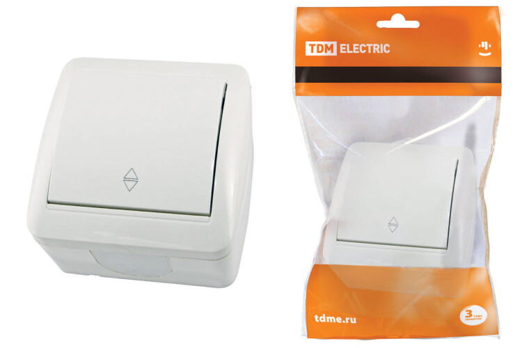 TDM Выключатель на 2 направления 1-кл. открытой установки IP44 10А белый "