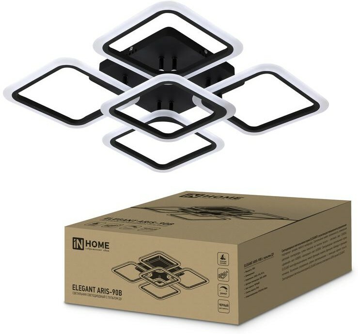 IN HOME Светильник LED ELEGANT ARIS- 90B 90Вт 230В 3000-6500K 7000Лм 590х590х130мм с ПУ черный 1/5