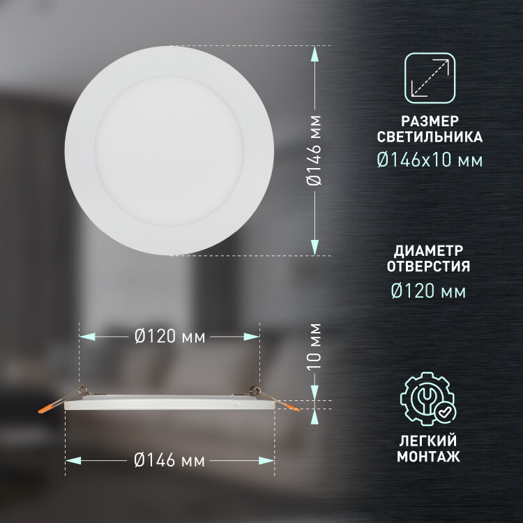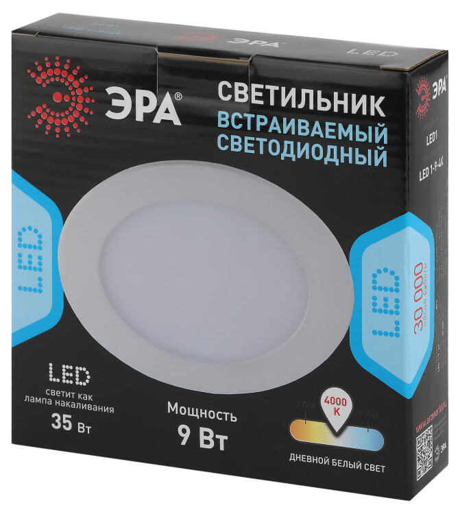 Круглый светодиодный светильник LED 1-9-4K - эффектное решение для любой комнаты в вашем доме. Светодиодный светильник можно использовать как в качестве основного освещения, так и для создания акцентов в определенных зонах комнаты. Благодаря скрытой части корпуса светильники можно встраивать в потолок или стены, создавая разный стиль помещений. Светильник ЭРА с приятным дизайном подойдет для помещений с разным интерьером: от лофта до модерна, классицизма или минимализма. Цветовая температура составляет 4000К, она оптимальна для глаз и не заставляет их испытывать дискомфорт. Максимальная мощность лампы – 9 Вт. Корпус встраиваемого светильника изготовлен из ударопрочного алюминия, что делает его особенно удобным в использовании, а благодаря матовому стеклу, защищающему лампу, свет рассеивается и становится мягким. Диаметр отверстия, требуемого для установки светильника составляет 120 мм, а диаметр самого светильника – 146 мм. Купив точечный светильник бренда ЭРА, вы останетесь довольны и сможете создать приятную атмосферу в доме.