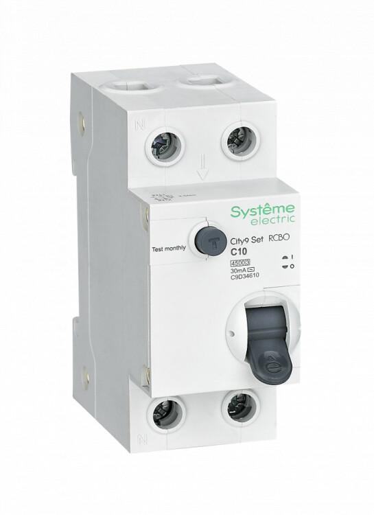Автоматические выключатели дифференциаль ного тока (АВДТ) серии City9 Set Systeme Electric,1P+N, номинальный ток 10 А, характеристика С, Icn = 4.5 кА, ток утечки 30 мА, тип АС. АВДТ применяется в электрических сетях напряжением 230В. Предназначен для защиты сети от перегрузок, людей от поражения электрическим током и токов короткого замыкания. Уставка по току утечки 30 мА обеспечивает гарантированную защиту людей при прямом прикосновении. Кнопка тест обеспечивает проверку работоспособности аппарата. Крепление на DIN-рейку шириной 35 мм. Безопасные клеммы (ранее Schneider Electric EZ9D34610).
