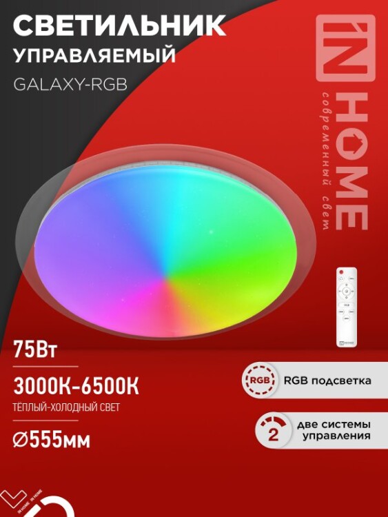 IN HOME Светильник светод. COMFORT GALAXY-RGB 75Вт 230В 3000-6500K 6000Лм 555x85мм с ПУ 1/3