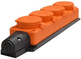 UNIVersal Колодка 4-х местная однофазная с заглушками "Компакт" с/з каучук Оранжевая 16А IP44 1/36