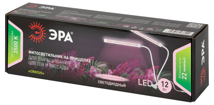 ЭРА Светильник для растений на прищепке FITO-20W-АLED-L полного спектра 12 Вт белый